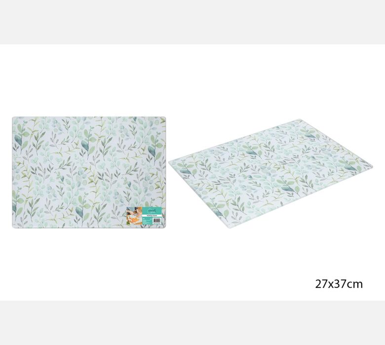 This worktop saver is a great addition to any kitchenware range, made from tempered glass for a smooth finish and featuring four raised rubber feet to reduce slippage, available in a eucalyptus design, perfect for keeping surfaces and table tops free from scratches.