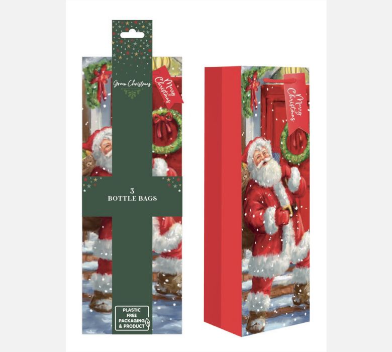 Green Christmas Eco Traditional Santa Bottle Bags Pack Of 3
